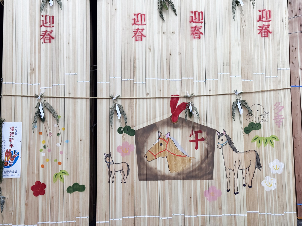 On our way to the first shrine visit of the year with my family, we always see a local lumber shop displaying a painting of the zodiac animal. They create a new one every year.