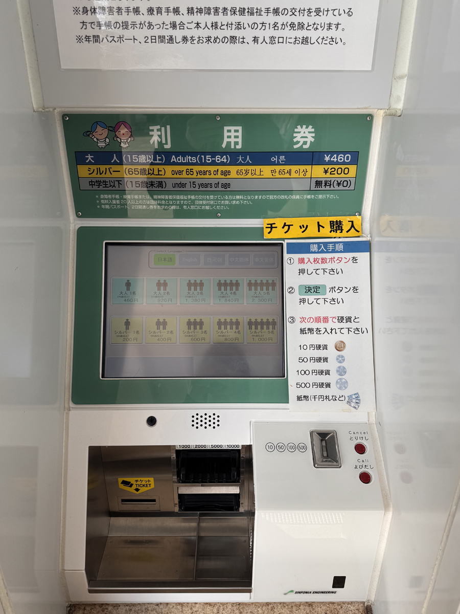 The adult rate is JPY 460 for ages 15 and up.
